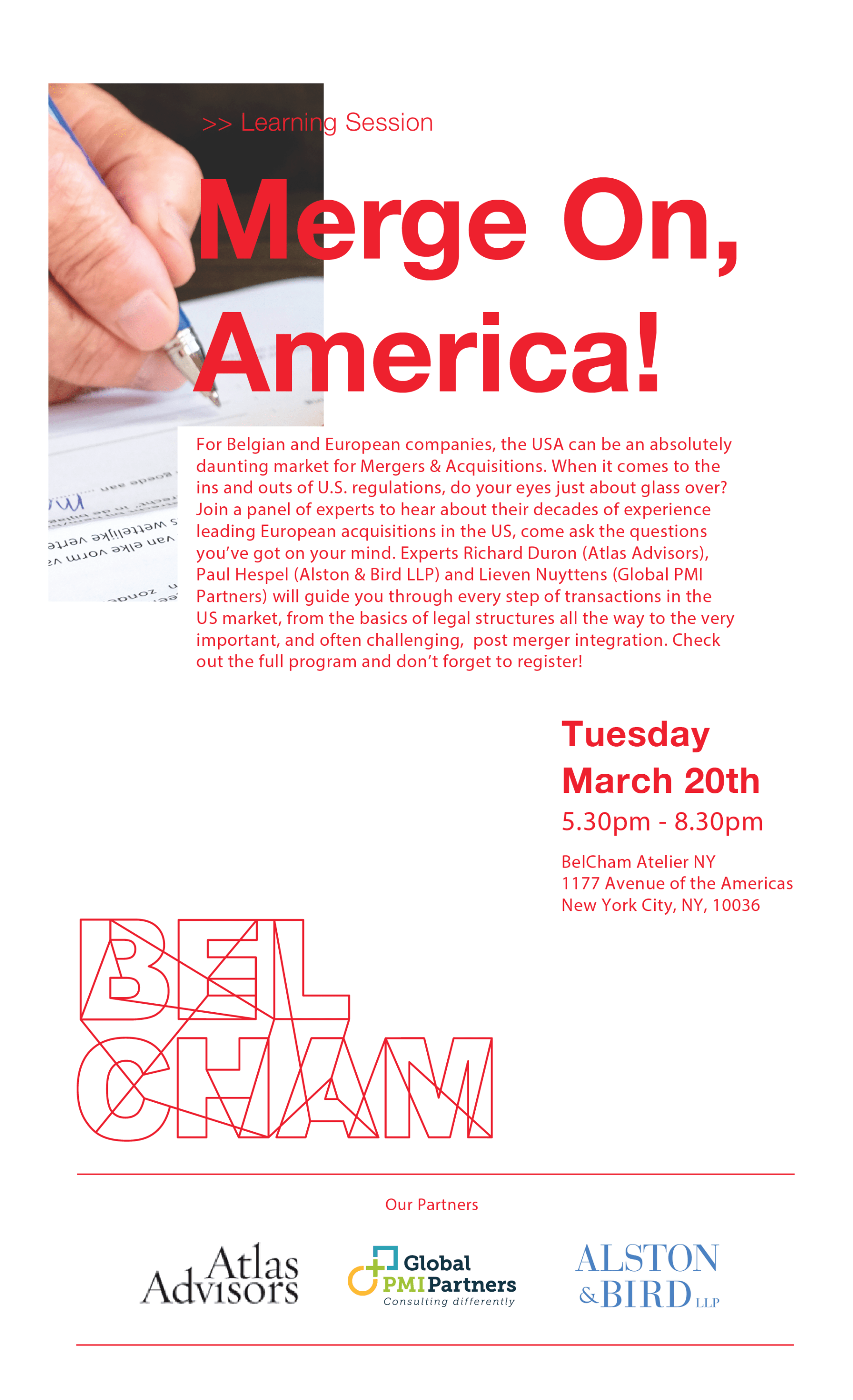 Experts Richard Duron (Atlas Advisors), Paul Hespel (Alston & Bird LLP), and Lieven Nuyttens (Global PMI Partners) will guide you through every step of transactions in the US market, from the basics of legal structures all the way to the very important, and often challenging, post merger integration. Check out the full program and don’t forget to REGISTER!